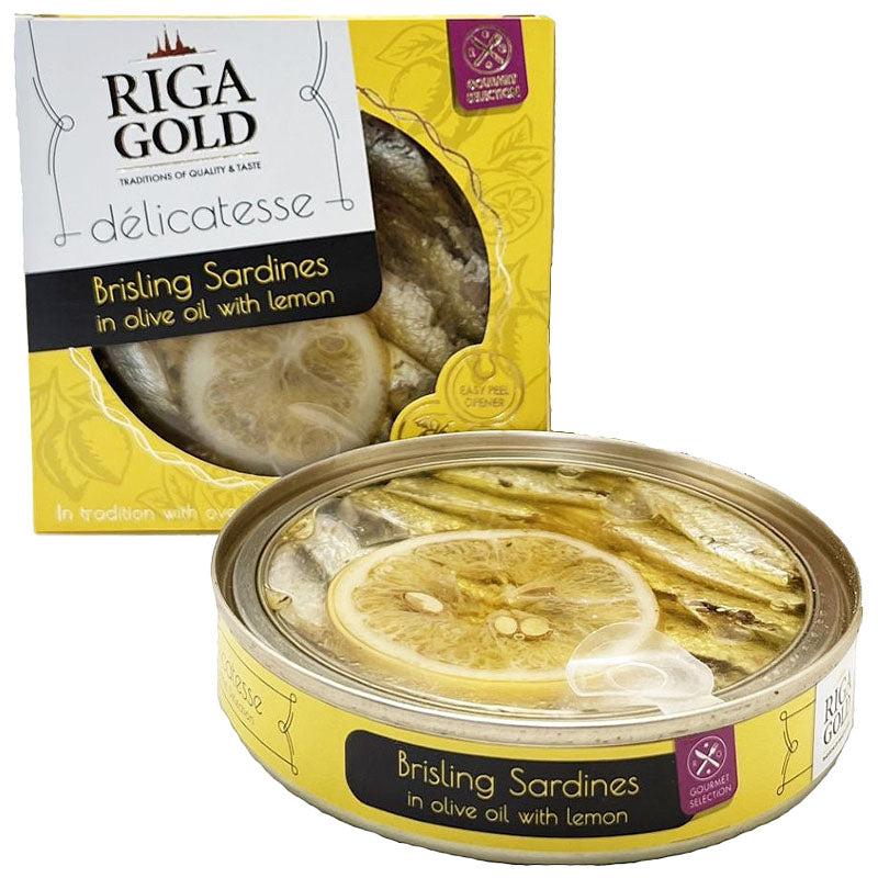 RIGA GOLD -Clear Top- Brisling Sardines in Olive Oil /w Lemon (Gourmet) 120g