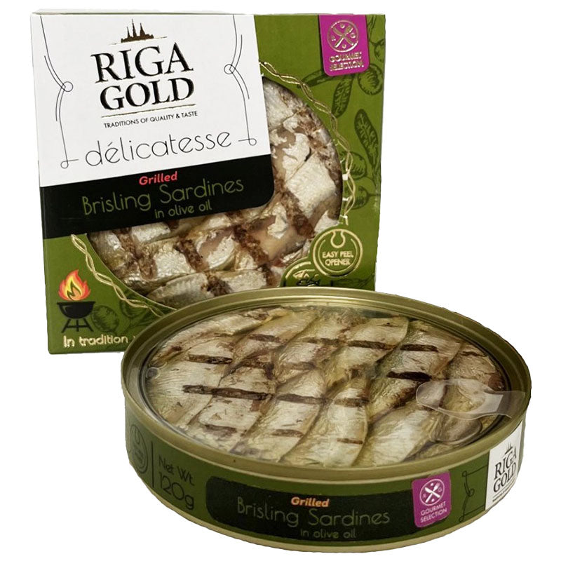 RIGA GOLD -Clear Top- Grilled Sardines Brisling in Olive Oil (Gourmet) 120g