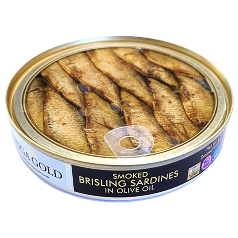 Increase quantity for Riga Gold -Clear Top- Smoked Brisling Sardines in Olive Oil 120g